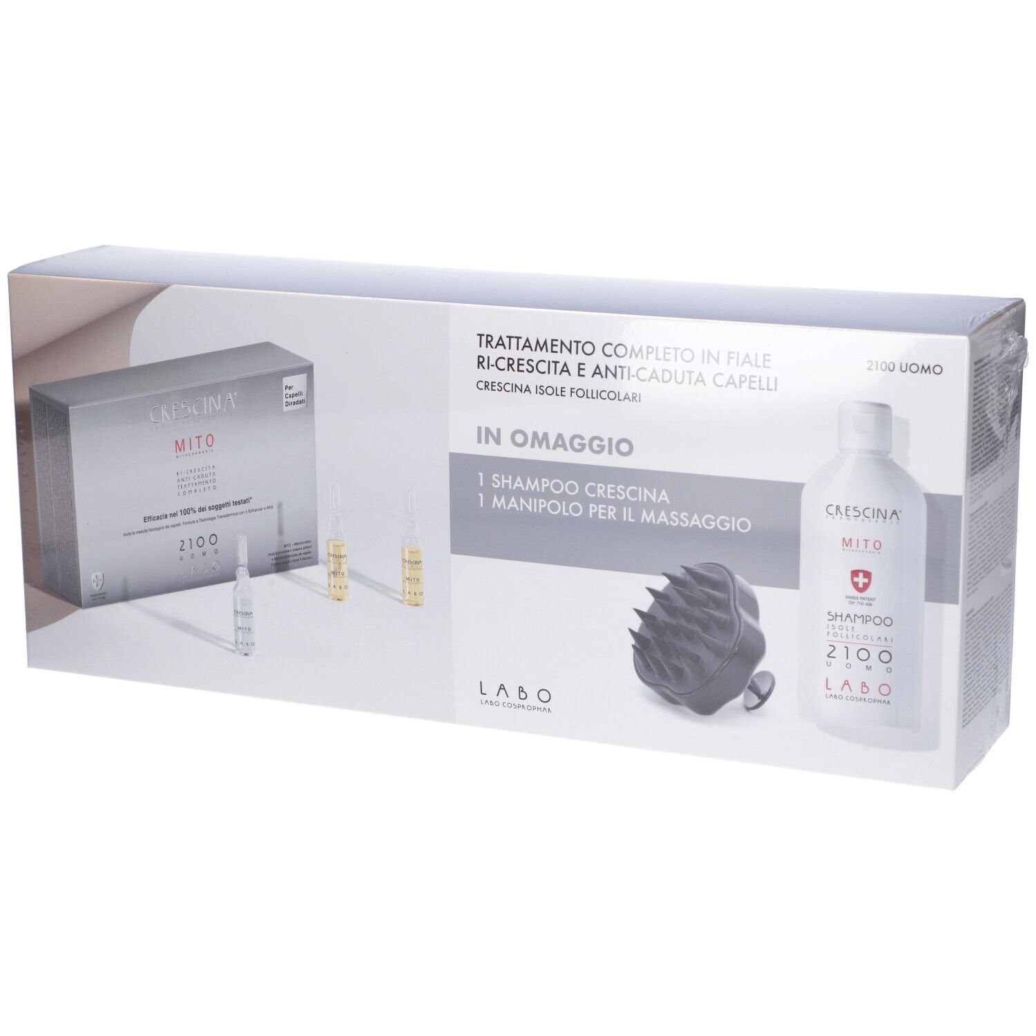 LABO Transdermic Trattamento Completo in Fiale Ri-Crescina Uomo 2100 + Omaggio Shampo e Manipol Massaggio