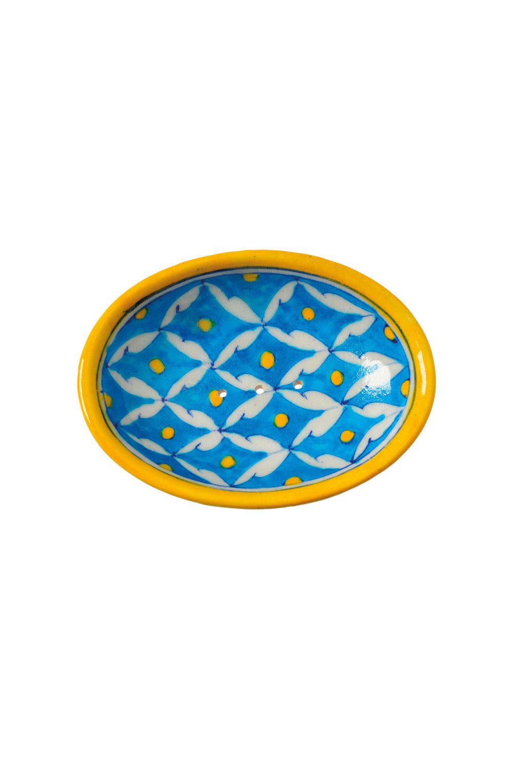 Preservare la tradizione e garantire i mezzi di sussistenza. Acquistando questo grazioso portasapone, non solo sceglierai un grazioso accessorio per il bagno, ma sosterrai anche la tradizionale arte della ceramica a Jaipur. Il portasapone fatto a mano proviene da un luogo in cui il sostentamento di molte persone è assicurato attraverso la produzione della serie Blue Pottery. La ciotola ha forma ovale ed è dotata di fori per il drenaggio dell'acqua in modo che il sapone sia sempre asciutto. Scegli uno dei nostri saponi profumati da abbinare. Materiale: Ceramica Dimensioni: 13 x 10 x 4 cm