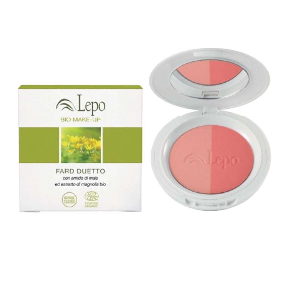 LEPO Fard Duo con due tonalità, polvere di riso bio e squalano vegetale, 100% ingredienti naturali, senza talco.