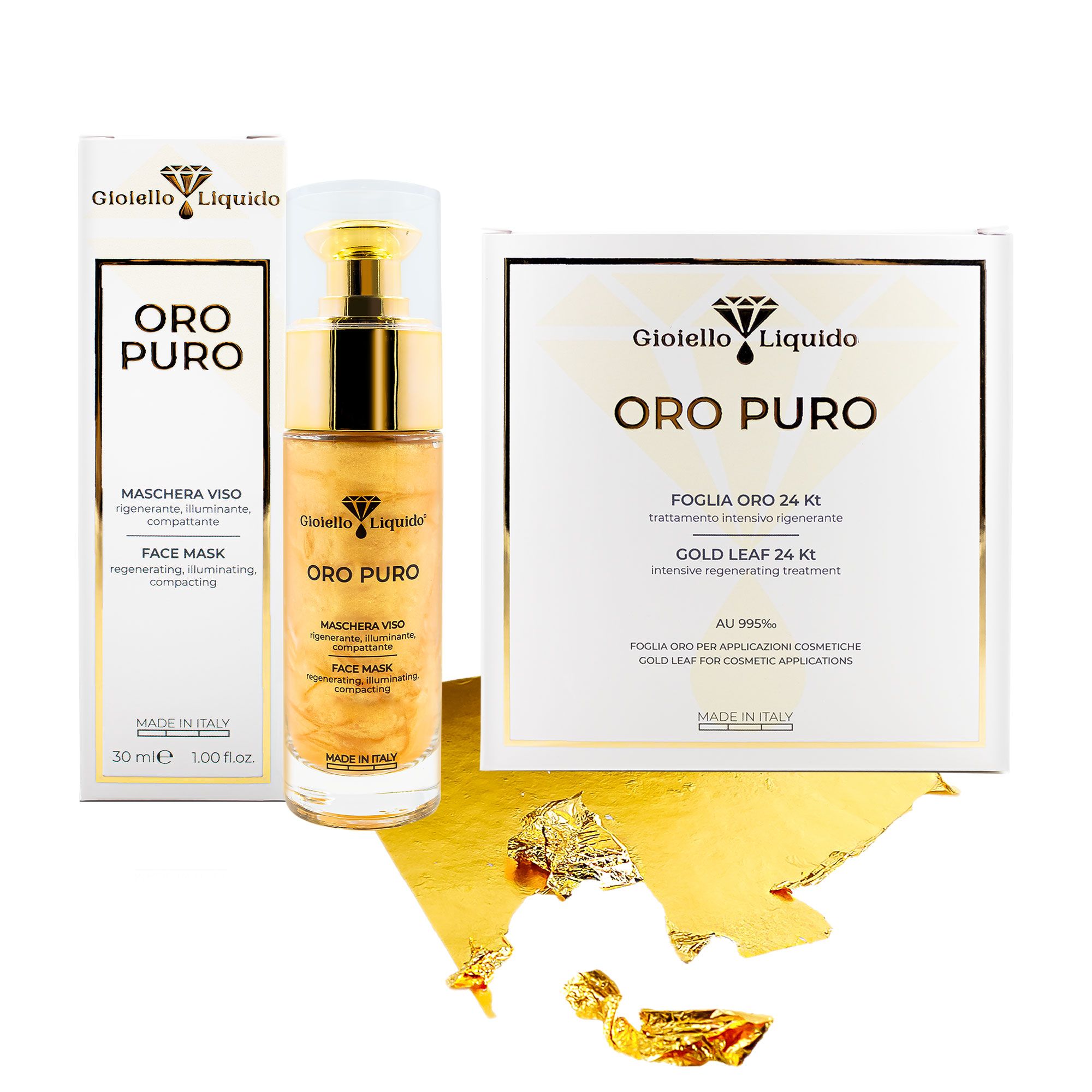 Gioiello Liquido Kit Maschera Viso + Foglia Oro 24 Kt