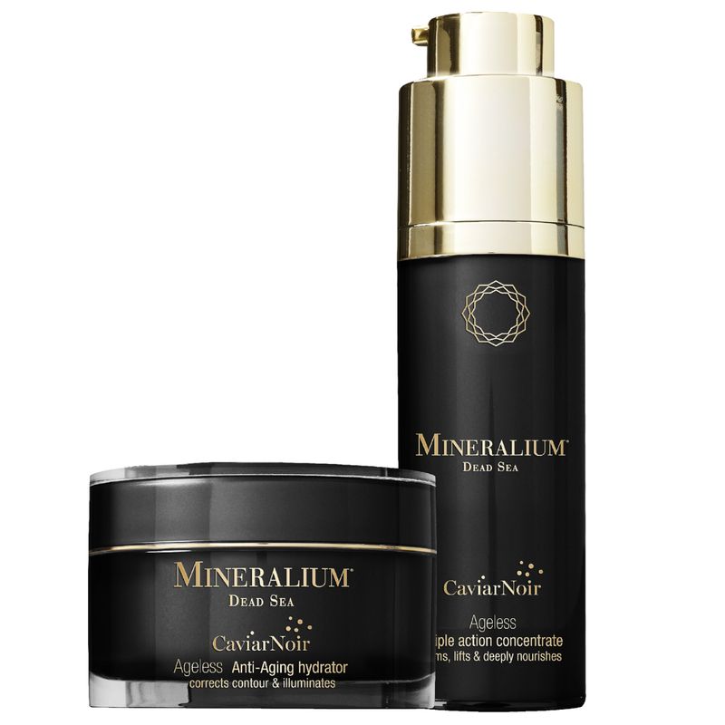 Il Kit Anti-Età Ageless Mineralium combina una crema idratante anti-età e un concentrato triple action arricchiti con estratto di caviale. Questi prodotti nutrono, rassodano e ringiovaniscono la pelle, riducendo visibilmente le rughe e migliorando l’elasticità. Arricchito con vitamine C ed E, collagene idrolizzato e minerali del Mar Morto, questo kit lascia la pelle luminosa e rivitalizzata. Senza solfati, parabeni o oli minerali.