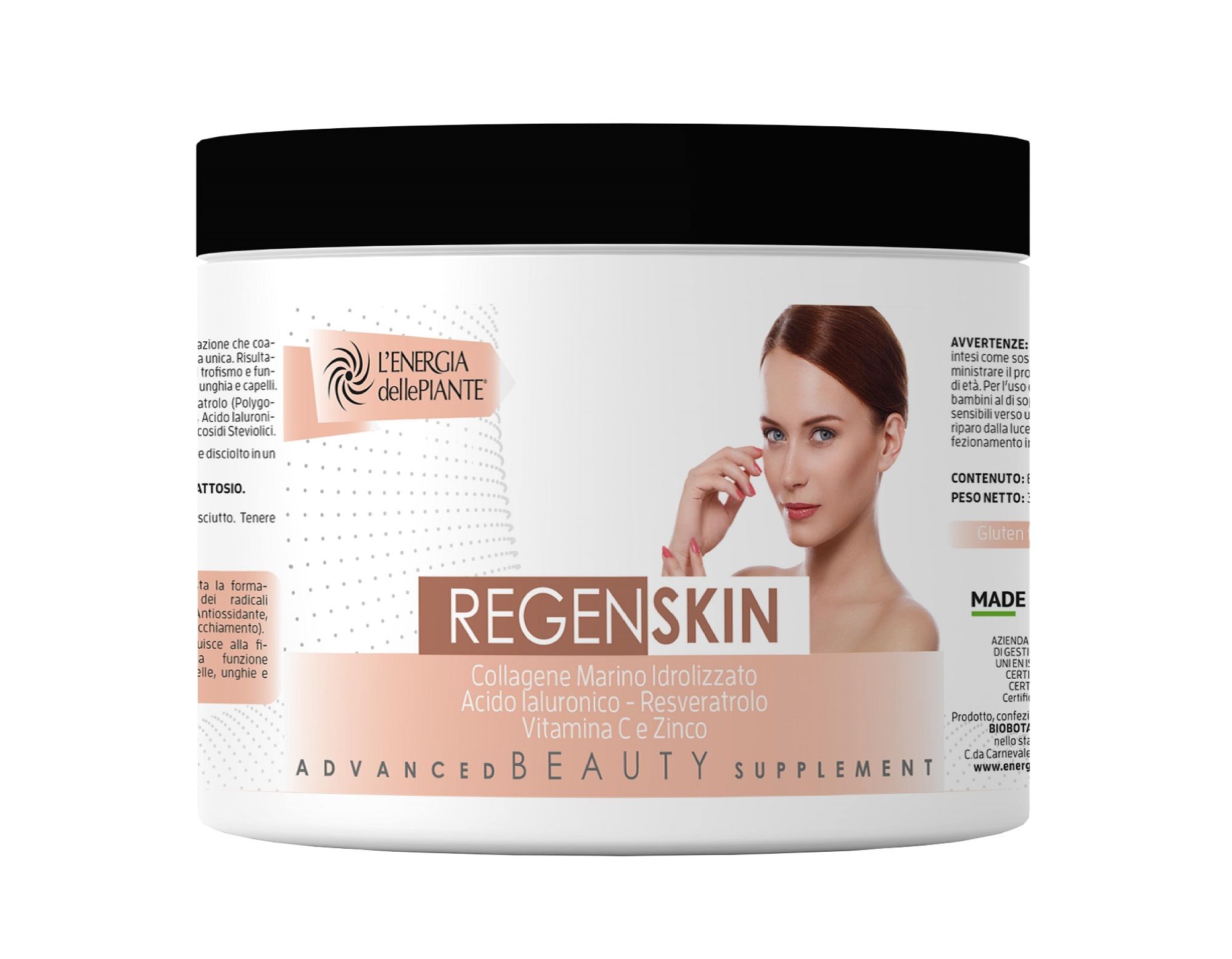 REGENSKIN ADVANCED BEAUTY SUPPLEMENT POLVERE è una combinazione che coadiuva gli effetti nutrizionali di tutti gli ingredienti contenuti nella sua formula unica. Risultato: un effetto antiossidante (contrasta la formazione di radicali liberi), sul trofismo e funzionalità della pelle, con azione di sostegno e ricostituente, benessere di unghia e capelli.