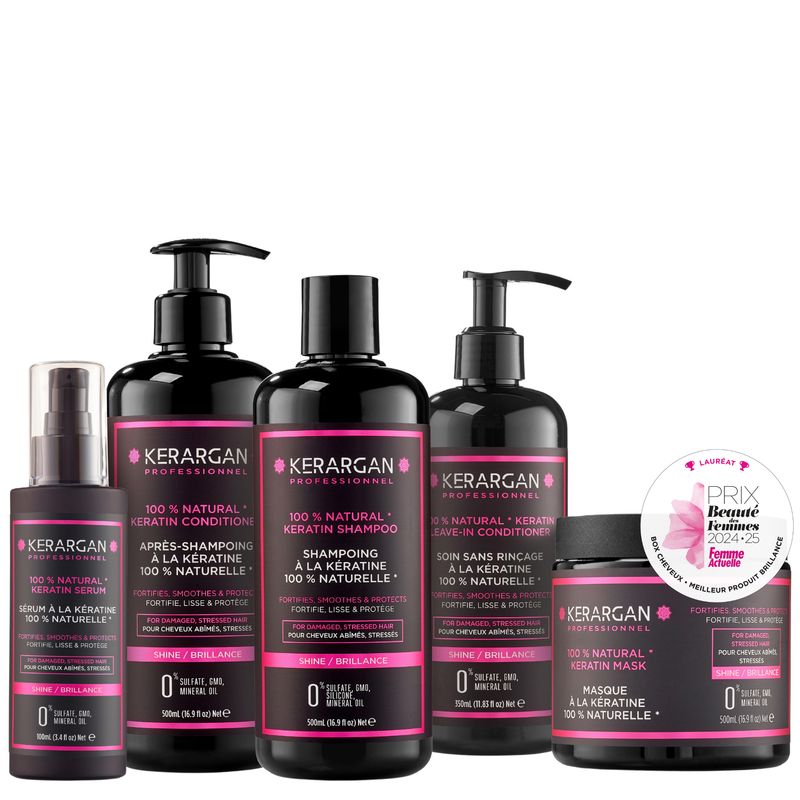 Kerargan - Set Shampoo, Balsamo, Maschera, Siero & Leave-In Cheratina - Capelli Danneggiati