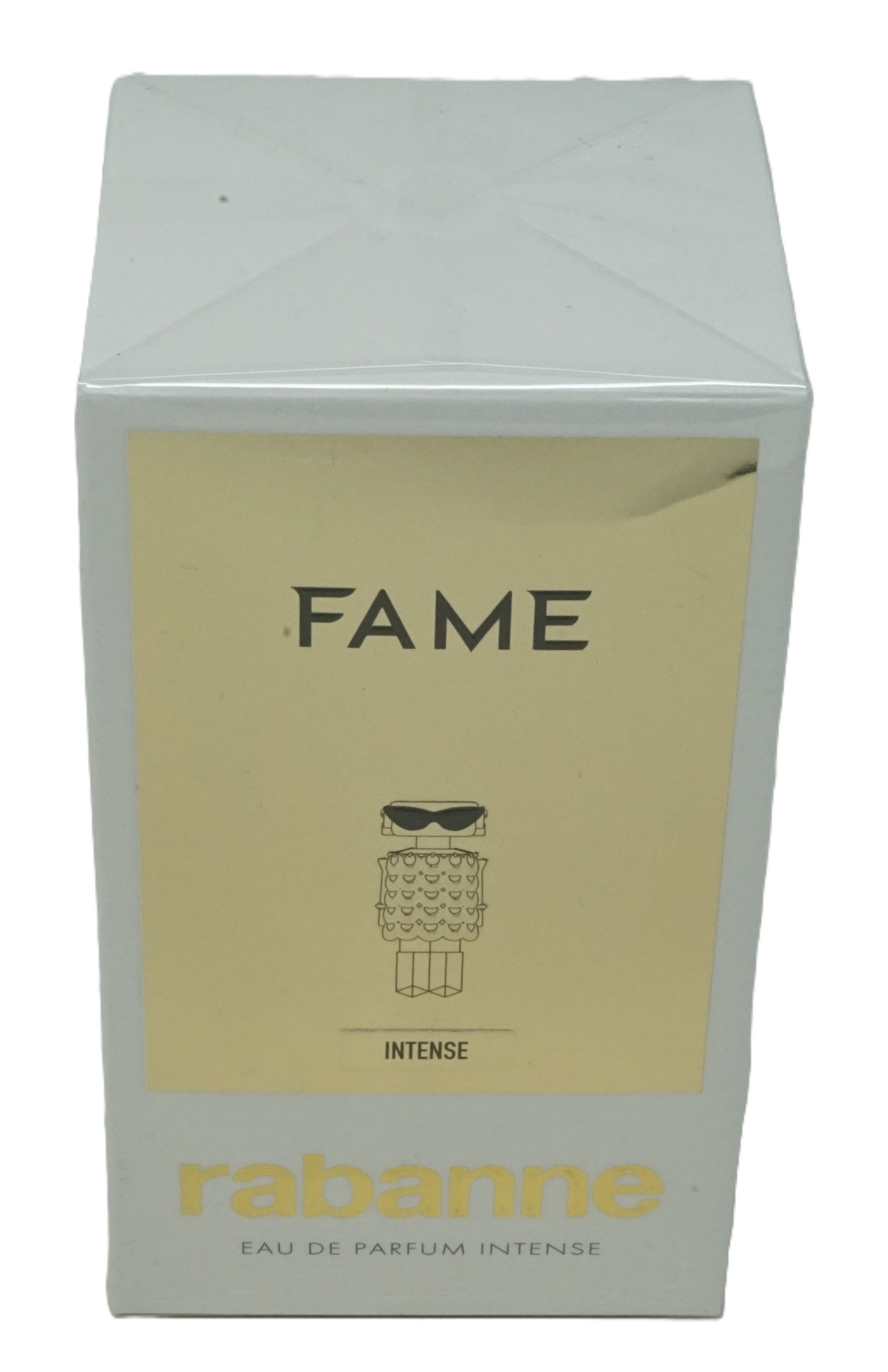 Paco Rabanne Fame Intense Eau de Parfum è una fragranza floreale legnosa e speziata, creata nel 2024. Questa essenza incarna l'eleganza della donna moderna, ispirata alla magia di una festa parigina. Le note di testa includono acqua di cocco, bergamotto e pepe rosa, mentre il cuore si apre a un bouquet di incenso e ylang ylang. Il fondo avvolge con sándalo e legno di cedro. Il flacone riflette i codici dell'alta moda, simbolo di una nuova era di femminilità.