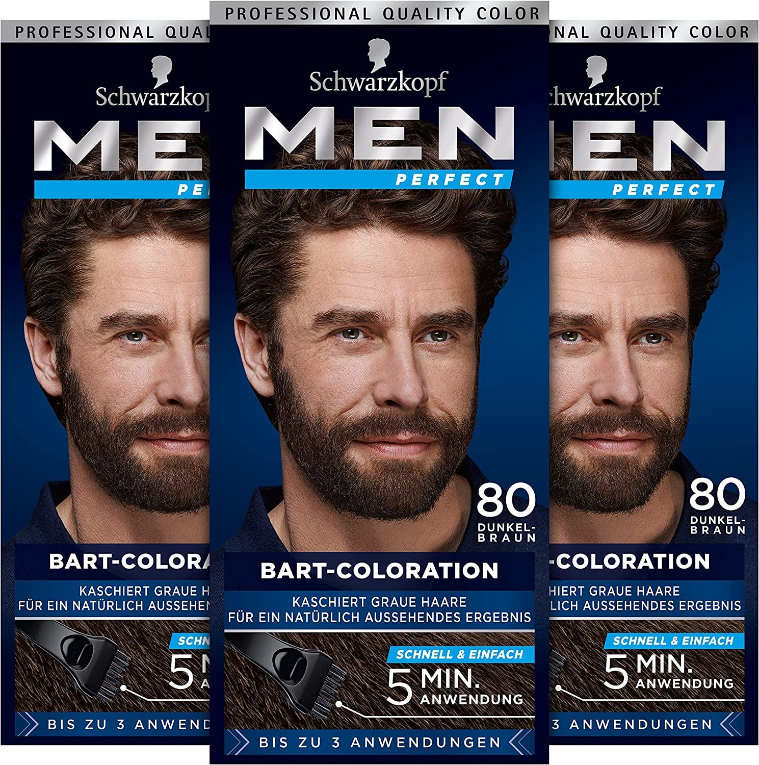 Due tonalità - La colorazione per barba Men Perfect è disponibile nella tonalità 60 per il colore della barba marrone e nella tonalità 80 per il colore della barba marrone scuro. Una confezione è sufficiente per un massimo di 3 applicazioni