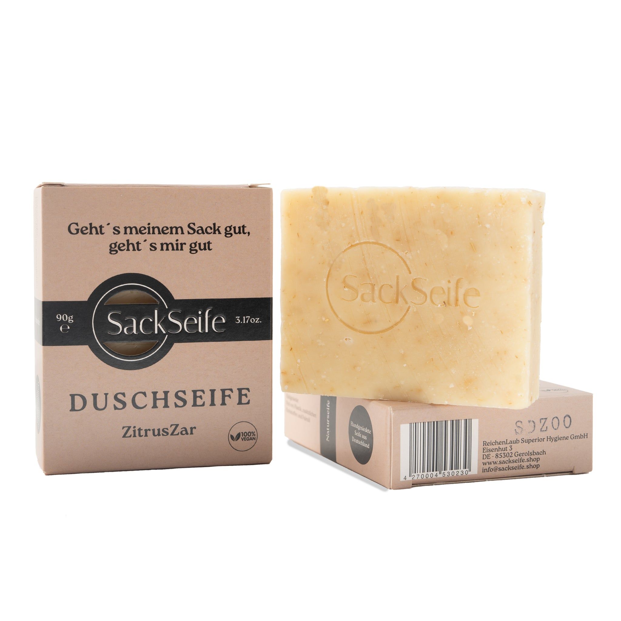 HomeCosmetici e IgieneCorpoBagno e DocciaSackSeife ZitrusZar | Sapone da doccia con olio di citronella | Artigianale, vegano e rinfrescante
