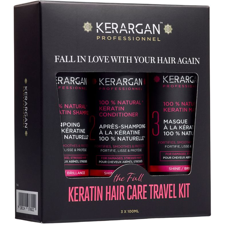 Kerargan - Kit Viaggio Cheratina - Shampoo, Balsamo & Maschera - Capelli Danneggiati - Senza solfati