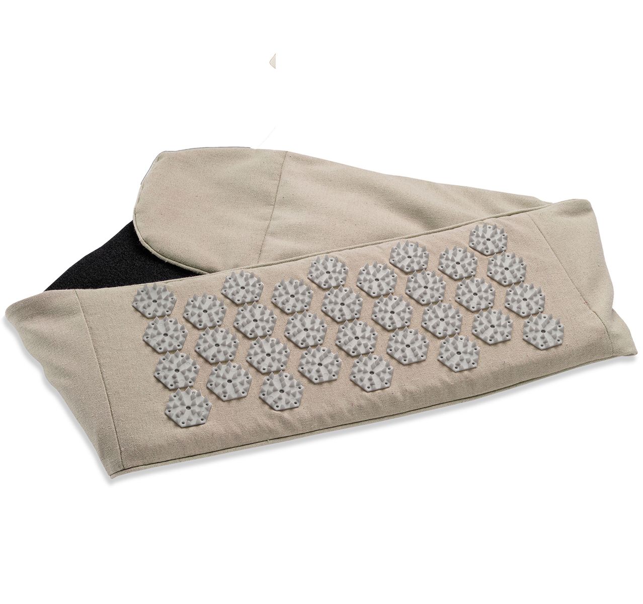 La cintura multifunzionale ha 736 punte particolarmente intense per stimolazione. Il rivestimento è realizzato in lino parziale e l'imbottitura è composta da fibra di cocco naturale e cotone.