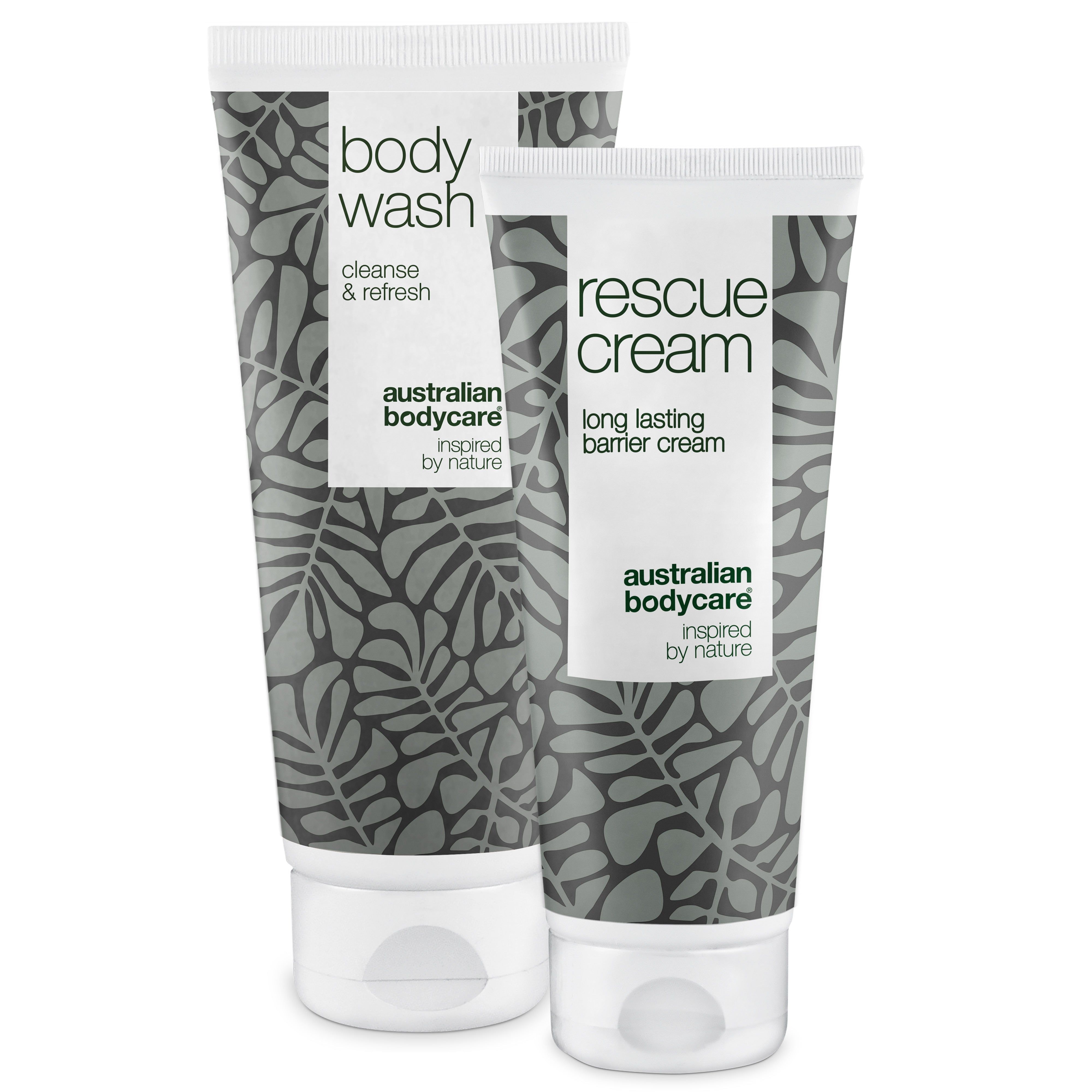 Il sapone per il corpo deterge la pelle e la mantiene pulita, prevenendo irritazioni e problemi cutanei | La crema barriera mantiene asciutta la pelle colpita e danneggiata e protegge dai batteri e dallo sviluppo di ascessi