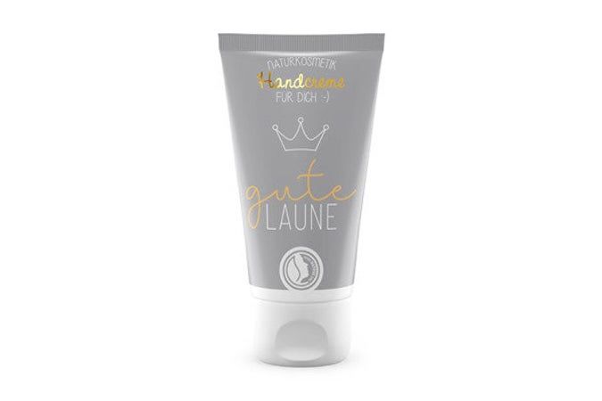 Motivo: Buon umore Tipo di prodotto: Crema per le mani Contenuto: Burro di karitè biologico, estratto di fiori di loto, estratto di tè bianco biologico Particolarità: Vegano, certificato NATRUE (etichetta per cosmetici naturali e biologici www.natrue.org), 100% naturale certificato cosmetici, senza lattosio, senza glutine capacità: 30ml