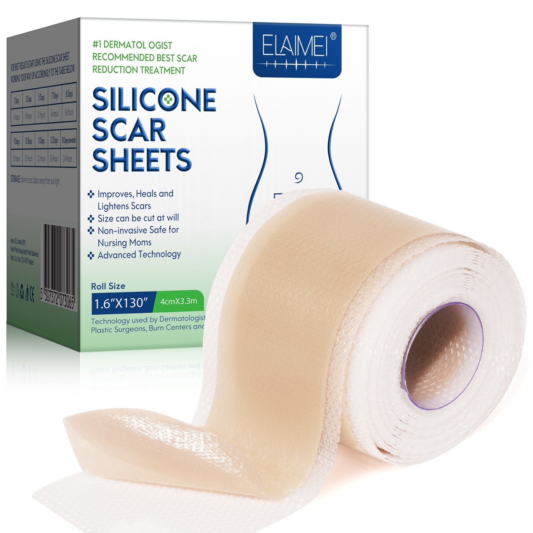 Cerotto in silicone autoadesivo riutilizzabile per il trattamento delle cicatrici – un prodotto avanzato sviluppato per il trattamento di cicatrici vecchie e nuove. Aiuta nella maggior parte dei tipi di cicatrici, come cicatrici ipertrofiche, cicatrici da acne, cheloidi, cicatrici da ustione, cicatrici post-operatorie e cicatrici da taglio cesareo.