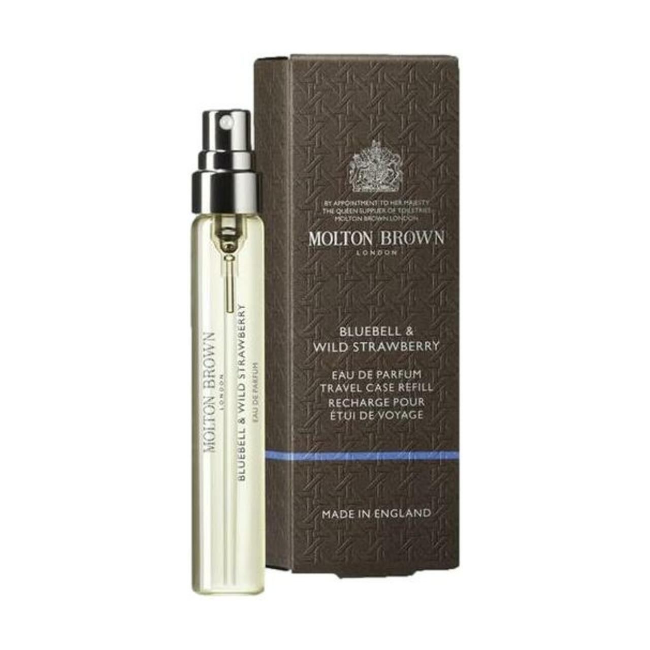 Eau de Parfum; formato 7.5 ml; fragranza con bluebell e fragola; marchio Molton Brown; formato pratico per provare o portare con sé.