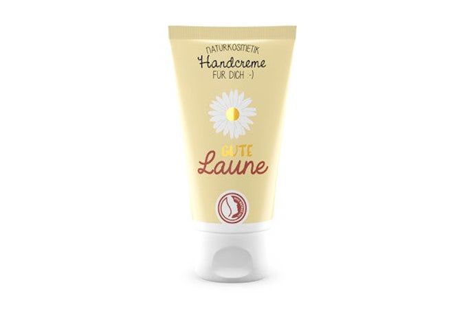 Motivo: Buon umore Tipo di prodotto: Crema per le mani Contenuto: Burro di karitè biologico, estratto di fiori di loto, estratto di tè bianco biologico Particolarità: Vegano, certificato NATRUE (etichetta per cosmetici naturali e biologici www.natrue.org), 100% naturale certificato cosmetici, senza lattosio, senza glutine capacità: 30ml