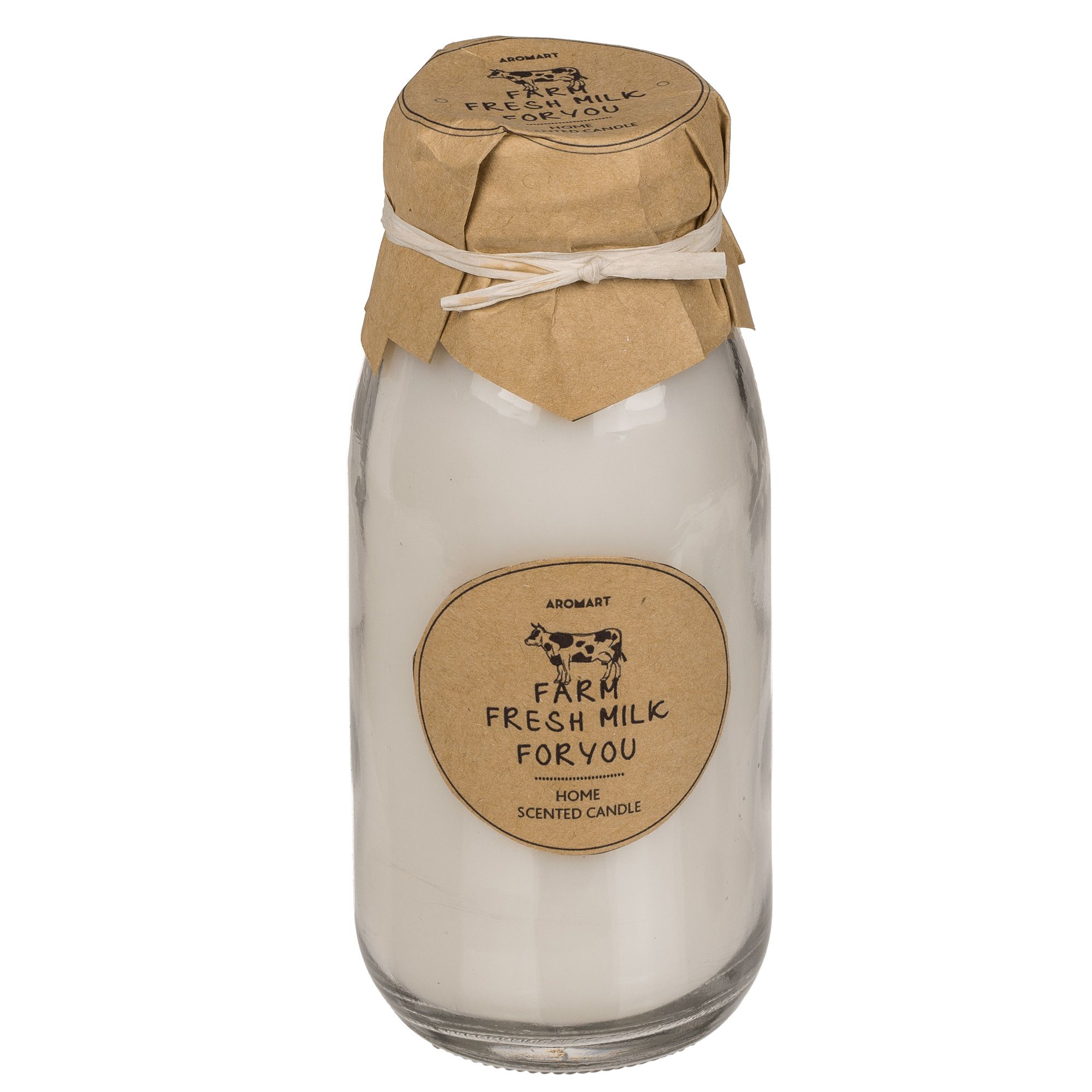 Candela profumata bianca (Latte Fresco) in bottiglia di latte, ca. 16 x 6 cm