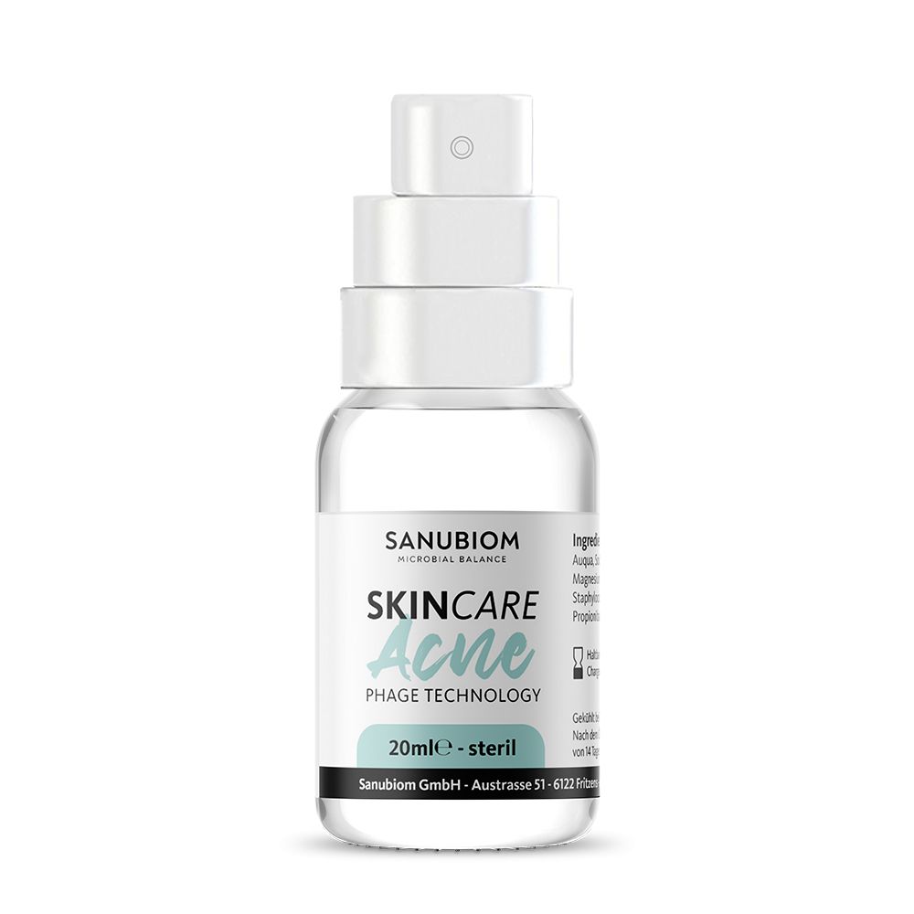 SkinCare Acne sfrutta la Phage Technology per ripristinare e mantenere l'equilibrio della pelle in modo naturale. Vengono utilizzati batteriofagi (ad es. fagi di Cutibacterium acnes) per limitare la diffusione di specifici batteri (ad es. Cutibacterium acnes). In questo modo, SkinCare Acne si è dimostrato efficace nella cura della pelle acneica e può essere un'alternativa al trattamento medicamentoso.