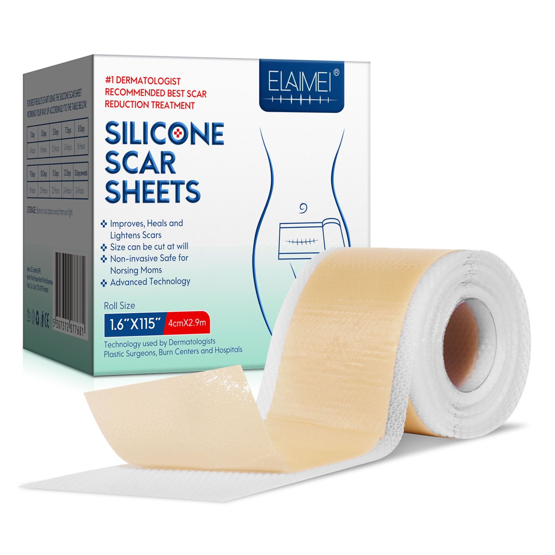 Cerotto in silicone autoadesivo riutilizzabile per il trattamento delle cicatrici – un prodotto avanzato sviluppato per il trattamento di cicatrici vecchie e nuove. Aiuta nella maggior parte dei tipi di cicatrici, come cicatrici ipertrofiche, cicatrici da acne, cheloidi, cicatrici da ustione, cicatrici post-operatorie e cicatrici da taglio cesareo.