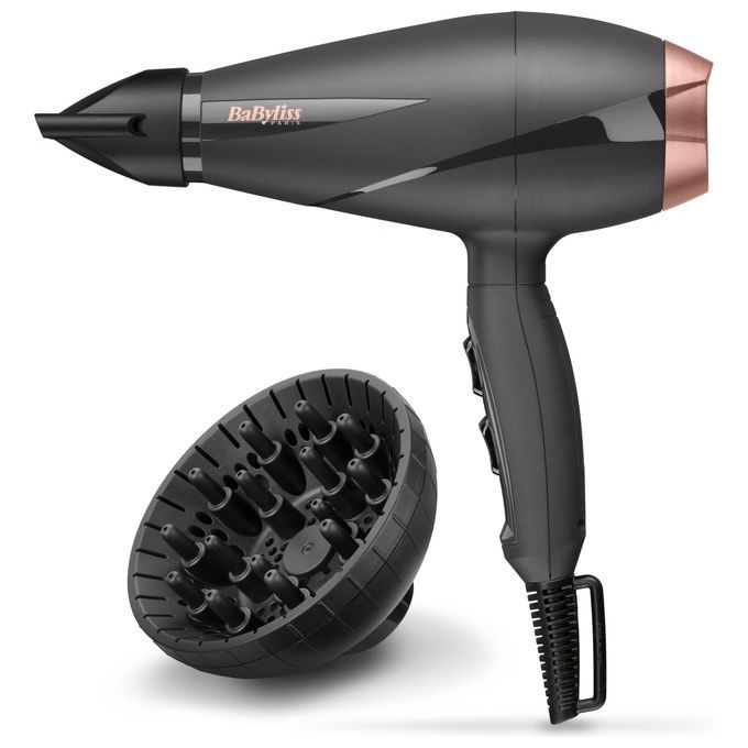 BaByliss Smooth Pro 2100. Tipo motore: AC, Velocità dell'aria: 29,4 m/s, Flusso d'aria: 106 m³/h. Colore del prodotto: Nero, Oro rosa, Colorazione superficie: Monocromatico, Tipo di attaccatura: Gancio per appendere. Potenza: 2100 W. Larghezza: 270 mm, Profondità: 85 mm, Altezza: 210 mm. Quantità per pacco: 1 pz, Larghezza imballo: 243 mm, Profondità imballo: 94 mm