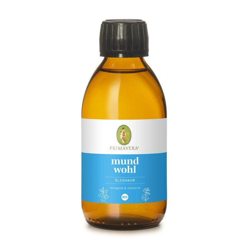 Ricetta efficace e gustosa in qualità biologica naturale al 100% con preziosi oli vegetali (olio di sesamo, cocco e olivello spinoso) e potenti oli essenziali (menta, zenzero, cardamomo e limone, ecc.). Da utilizzare prima di lavarsi i denti a stomaco vuoto. Metti 1 cucchiaio di olio in bocca per 10 – 20 minuti e tiralo attraverso i denti. Quindi sputarlo in un fazzoletto, gettarlo e sciacquare la bocca con acqua. Lavati i denti come al solito. Contenuto, INCI olio di girasole* biologico, olio di sesamo* biologico, grasso di cocco* biologico, olio di polpa di olivello spinoso* biologico, oli essenziali naturali al 100%: olio essenziale di limone* biologico, olio essenziale di zenzero* biologico, olio essenziale di menta verde* biologico, essenziale olio di cardamomo* biologico* naturale Vitamina E, Limonene**, Citral**, Geraniol** // Olio di semi di Helianthus Annuus (girasole)* biologico, Olio di semi di sesamum Indicum (sesamo)* biologico, Olio di Cocos Nucifera (cocco)* biologico , Olio di frutta Hippophae Rhamnoides* biologico, Fragrance (Parfum)**, Olio di scorza di limone (Citrus Limon)* biologico, Olio di radice di Zingiber Officinale (zenzero)* biologico, Olio di foglie di Mentha Viridis (menta verde)* biologico, Olio di semi di cardamomo di Elettaria* org, Tocoferolo, Limonene* *, Citrale**, Geraniolo**. *da coltivazione biologica controllata **ingredienti naturali di oli essenziali puri al 100%.