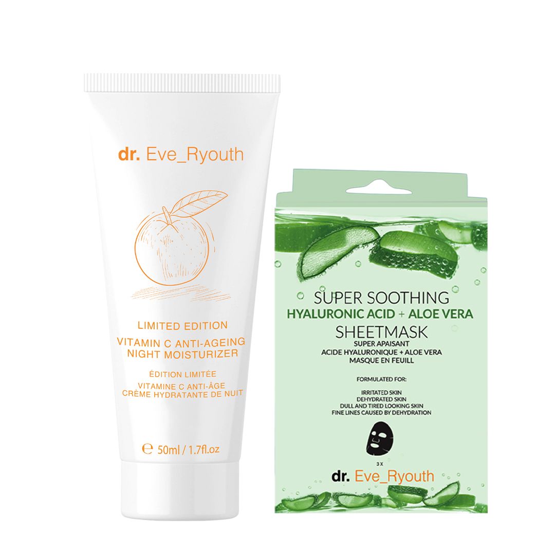 DER Crema idratante notturna alla vitamina C super lenitivo + maschera all'aloe vera - Maschere