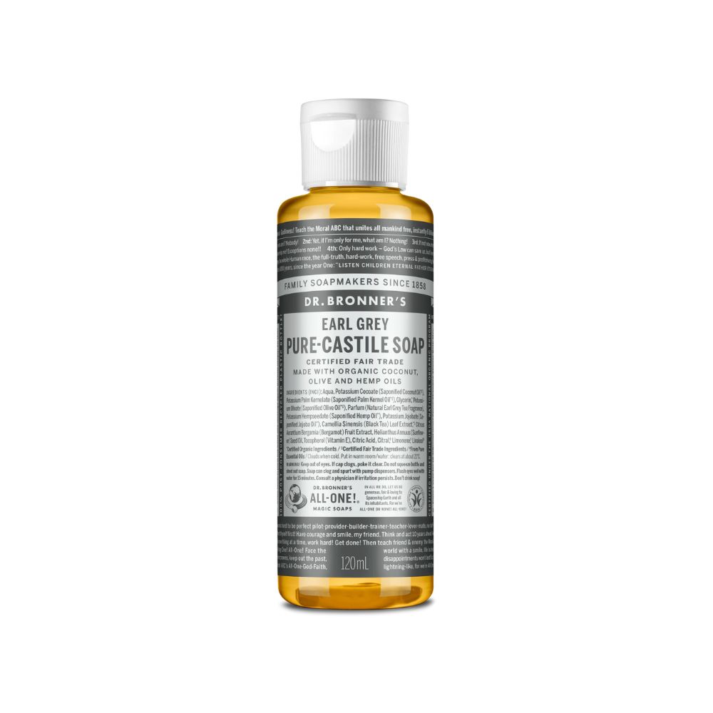Il sapone liquido 18 in 1 Earl Grey del Dr Bronner's può essere utilizzato in molti modi e ha una fragranza deliziosa.