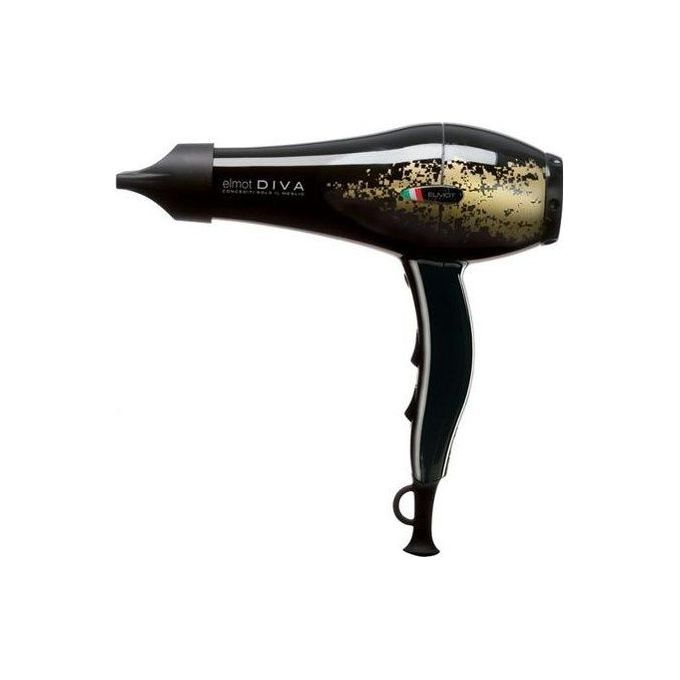 - Motore professionale lunga durata- 2 regolazioni velocità - 4 temperature- Tasto colpo freddo- Cavo professionale ultraflessibile lunghezza m.3- Bocchettone ultrasottile con apertura stretta HOT- Bocchettone ultrasottile con apertura ampia style- Diffusore professionaleElmot Diva nasce dai laboratori Elmot per interpretare le richieste del consumatore più attento ed esigente, che pone un occhio all’ambiente e alla spesa senza rinunciare alle prestazioni.I tecnici Elmot, che da 30 anni operano nel settore degli strumenti professionali per l’hairstyling, hanno realizzato un asciugacapelli con un motore unico a tecnologia ENERGY SAVING, altamente performante, in grado di combinare prestazioni ed efficienza:Elmot Diva opera come un asciugacapelli potente e professionale, consumando solo 1000W.