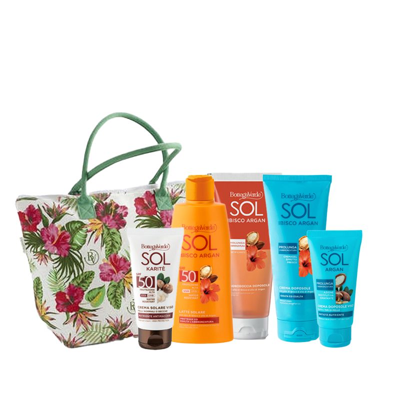 SOL Ibisco Argan - Latte solare - protegge ed esalta l'abbronzatura - con olio di Ibisco e olio di Argan - SPF50 protezione alta (200 ml) - water resistant
