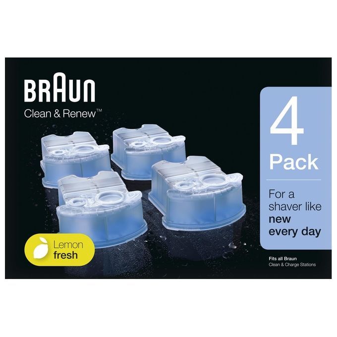 Refill Clean & Renew Braun Syncro Shaver System •Leaves your shaver thoroughly and hygienically clean for a better shaving performance every day•The shaved stubbles and debris are cleaned and stored in the cleaning cartridge•Daily use will enable approximately one month cleaning from one cartridge•Fluid cleans and lubricates razor automatically