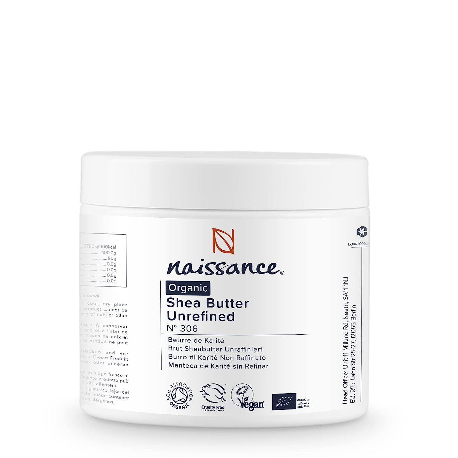 Contiene tutti i benefici naturali del burro di karité crudo. Contiene alti livelli di acidi grassi insaturi e antiossidanti naturali. A differenza del burro di karité raffinato, il burro di karité non raffinato ha un odore molto forte e un colore caratteristico.