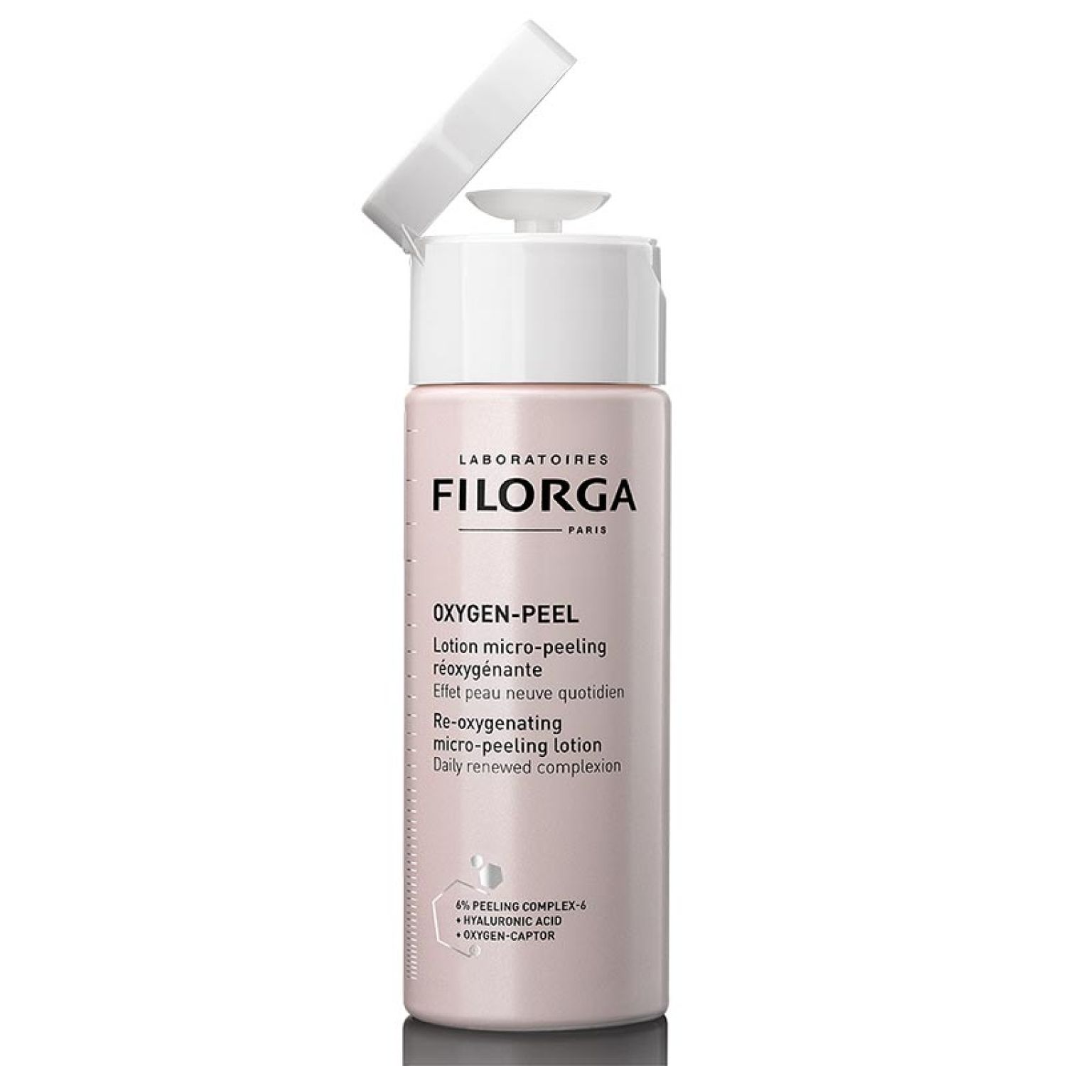 Lotion Micro-Peeling di Filorga con 6 acidi esfolianti e acido ialuronico per una pelle luminosa e rivitalizzata.