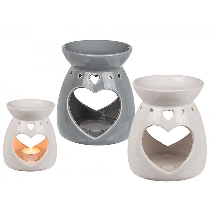 Lampada aromatica, Cuore, ca. 10 x 13 cm, in ceramica, 1 x bianca, 1 x grigia nel set