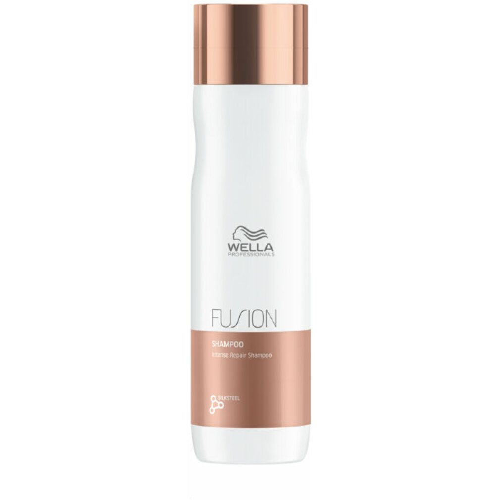 Wella Fusion Shampoo (250 ml) è un detergente per rigenerare i capelli danneggiati. Migliora la resistenza alla rottura dei capelli fino al 95% e rafforza le fibre capillari sensibili. L'idratazione intensiva e la levigazione della superficie dei capelli aumentano visibilmente la lucentezza. Lo shampoo va distribuito uniformemente sui capelli e sul cuoio capelluto e massaggiato. Quindi risciacquare accuratamente.