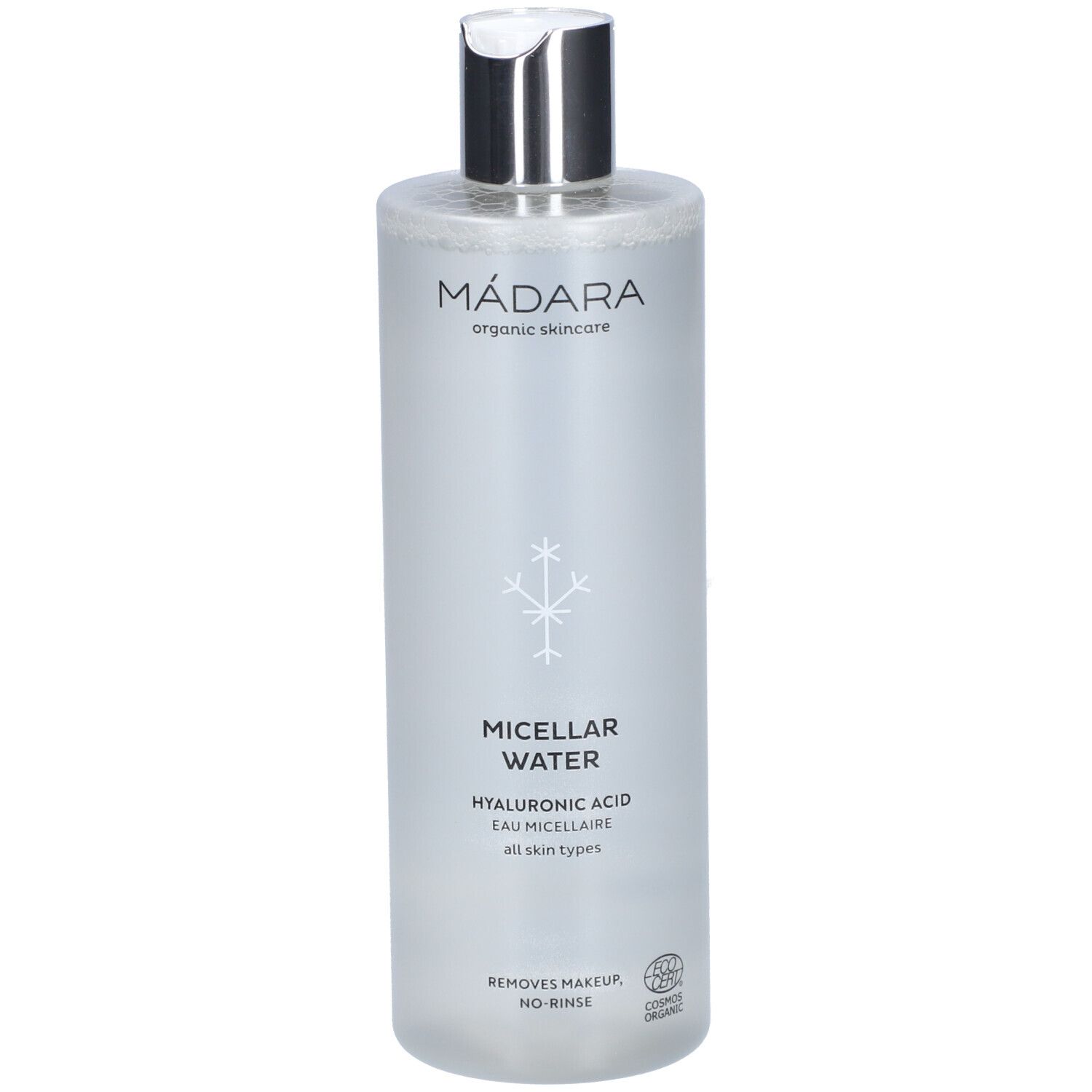 Acqua micellare Madara con acido ialuronico, deterge e strucca delicatamente. 400 ml.
