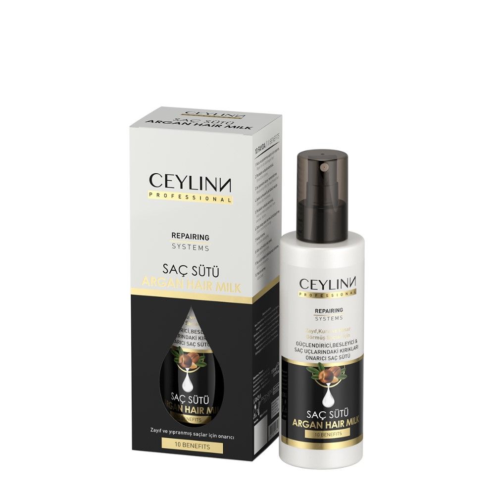 Il miracoloso prodotto per la cura dei capelli Ceylinn Argan Therapy Hair Milk offre 10 veri trattamenti di cura in un unico passaggio sui capelli, invece di utilizzare 10 prodotti diversi. Grazie al contenuto di olio di argan, fornisce una cura naturale per i capelli.