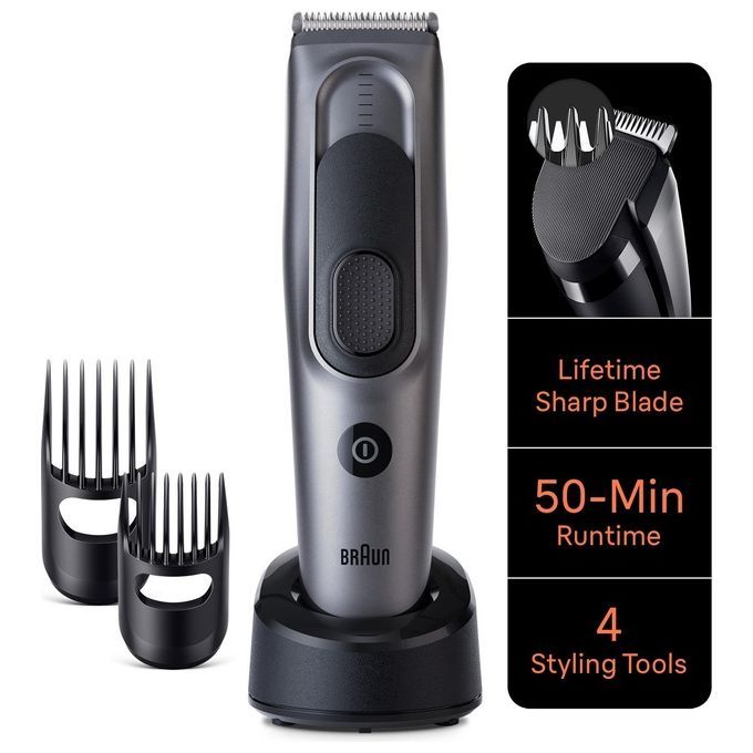 Per uno styling dei capelli comodamente a casa con il tagliacapelli Braun. Le lame ultra affilate consentono di tagliare facilmente i capelli di qualsiasi lunghezza o spessore. Con 2 pettini, 17 impostazioni di lunghezza e il Sistema di memoria SafetyLock salva l’ultima impostazione. Ha una potente batteria Ni-MH, un’autonomia di 50 minuti ed è lavabile.