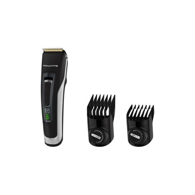 Rowenta Advancer TN5201 , Tagliacapelli, Lame autoaffilanti in acciaio Inox. Colore del prodotto: Nero, Grigio, Lunghezza minima del taglio: 0,5 mm, Lunghezza massima del taglio: 3 cm. Indicatori LED: Sostituzione della batteria. Alimentazione: CA/Batteria, Tempo di funzionamento: 120 min, Tipo batteria: Batteria integrata. Tipo di pettine: Regolabile