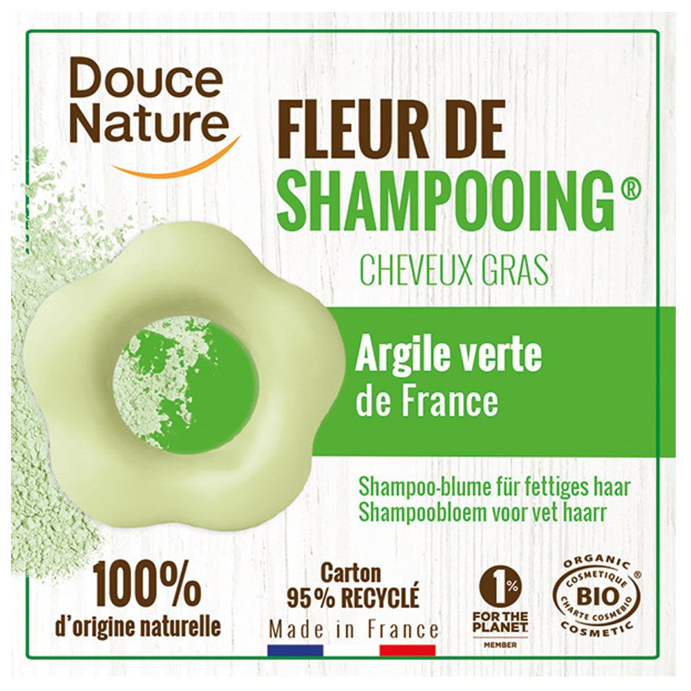 Lo Shampoo Biologico Fiore di Ortica & Argilla Verde per Capelli Grassi Douce Nature è un prodotto solido. Grazie alla sua schiuma fine, lo shampoo fiore è destinato al lavaggio quotidiano dei capelli. Gli estratti biologici di ortica del fiore dello shampoo vengono utilizzati da anni per la cura del cuoio capelluto. Sono noti per le loro proprietà seboregolatrici. L'argilla verde del fiore dello shampoo assorbe il sebo in eccesso dannoso per il cuoio capelluto. Il burro di karitè del fiore dello shampoo nutre i capelli e li rende elastici e morbidi. Le sostanze medicinali contenute nel fiore dello shampoo sono di origine vegetale. Un fantastico concetto ecologico Tutti i principi attivi di uno shampoo sono combinati su una base di argilla in una forma di fiore attraente e pratica. Niente bottiglia di plastica, niente acqua, meno trasporti, nasce il primo eco-shampoo! Applicazione Bagnare i capelli e fare lo shampoo, strofinare il prodotto sui capelli bagnati, applicare lo shampoo, risciacquare bene. Contenuto Disodium Lauryl Sulfosuccinate, alcool cetearilico, amido di triticum vulgare (grano)*, glicerina**, cocamidopropil betaina, olio di ricino idrogenato, acido stearico, glucoside di cocco, burro di butyrospermum Parkii (karitè)*, acqua, olio di nocciolo di Argania Spinosa *, Bentonite, Parfum (profumo), Illite, Limonene, Linalool, Geraniol. * coltivato biologicamente ** da contenuto biologico