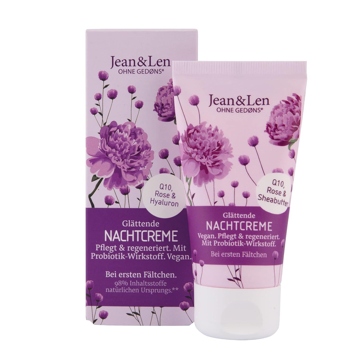 Contenuto della fornitura: 1 x 50 ml Jean&Len Smoothing Night Cream, con Q10, acido ialuronico e acqua di rose, riduce le rughe con l'uso regolare, crema da notte, senza siliconi, parabeni e alcool, vegan
