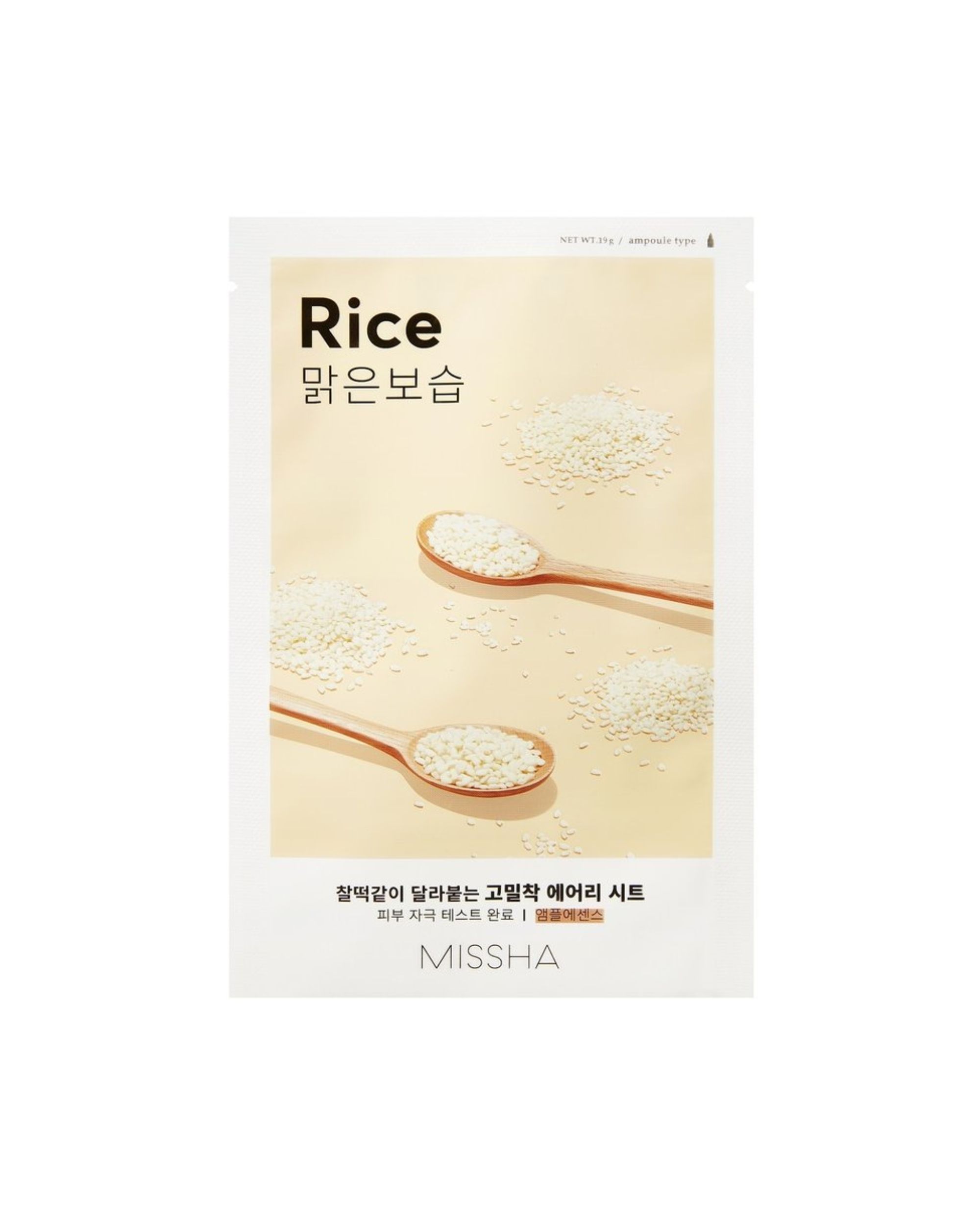 Missha Airy Fit Sheet Mask Rice con estratto di riso rende la pelle morbida, luminosa e rafforza la pelle spenta. Grazie all'elevato contenuto di idratazione, la maschera si attacca alla pelle e sembra una seconda pelle. Grazie al metodo di infusione a freddo, è un ottimo rinfrescante: i principi attivi arrivano alla pelle in modo più sicuro e fresco. Contiene il 100% di ingredienti naturali.