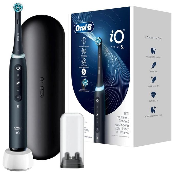 Oral-B iO Series 5. Utilizzo: Adulto, Tipo di spazzolino da denti: Spazzolino a vibrazione, Modalità dello spazzolino: Cura quotidiana, Intenso, Sensibile, Super sensitive, Sbiancante. Alimentazione: Batteria, Tipo batteria: Batteria integrata. Tipo di imballo: Scatola. Numero di spazzolini inclusi: 1 pz, Numero di testine incluse: 1 pz