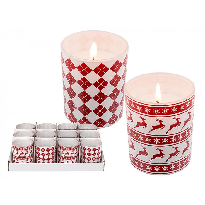 Candela bianca in vetro rosso/bianco, ca. 6 x 7,5 cm, 2 modelli tra cui scegliere, il modello verrà inviato a caso.