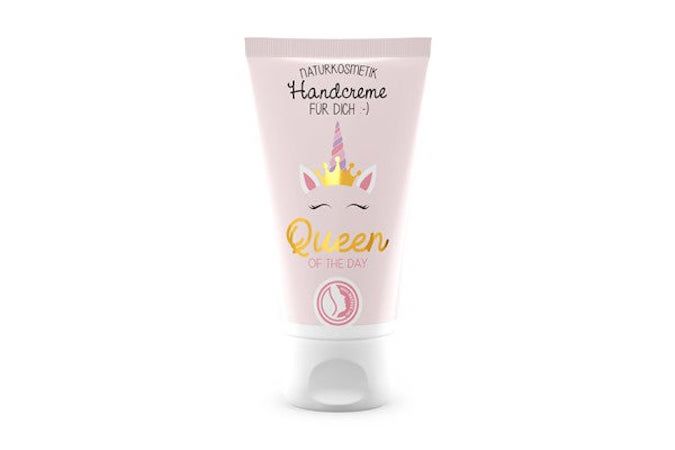 Motivo: Unicorno, regina del giorno Tipo di prodotto: Crema per le mani Contenuto: Burro di karité biologico, estratto di fiori di loto, estratto di tè bianco biologico Particolarità: Vegano, certificato NATRUE (etichetta per cosmetici naturali e biologici www.natrue.org), Cosmetici naturali certificati al 100%, Senza lattosio, senza glutine, capacità: 30 ml
