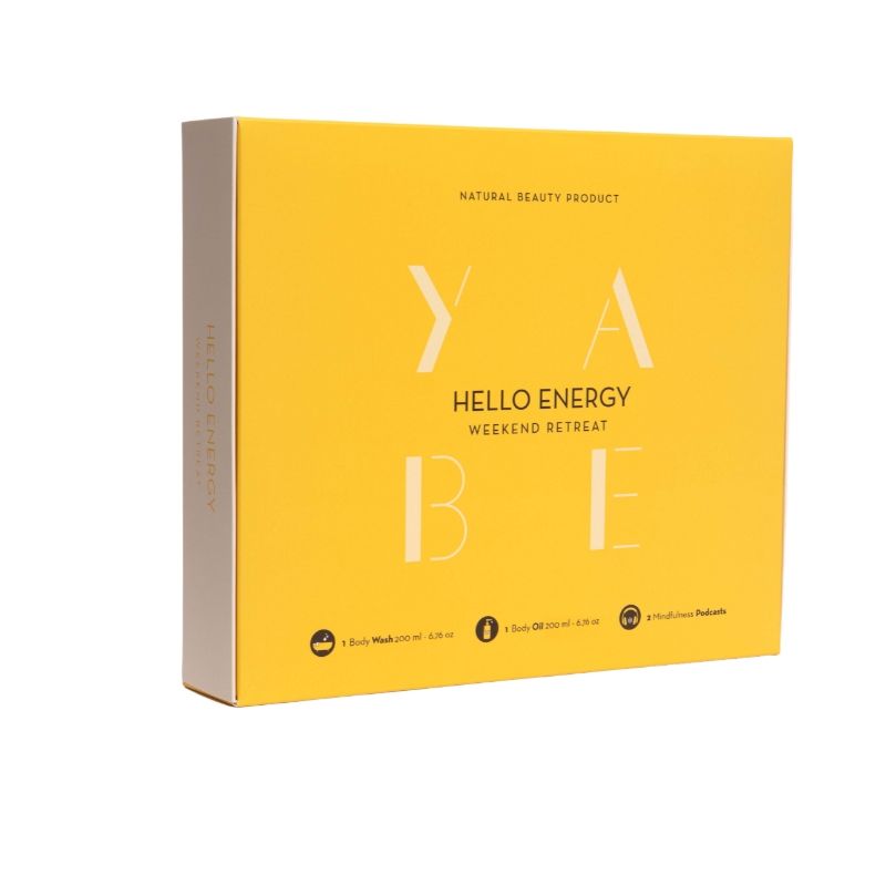 Ricaricati e rinnovati con un'esperienza totalizzante di rivitalizzazione, con il cofanetto benessere "YA.BE Hello Energy Weekend Retreat" con i suoi prodotti naturali per il corpo dedicati a un weekend retreat completamente tuo: un bagno doccia naturale e il miglior olio corpo energizzante, assieme a due podcast che ti guideranno nell'esprimere tutte le tue migliori energie.