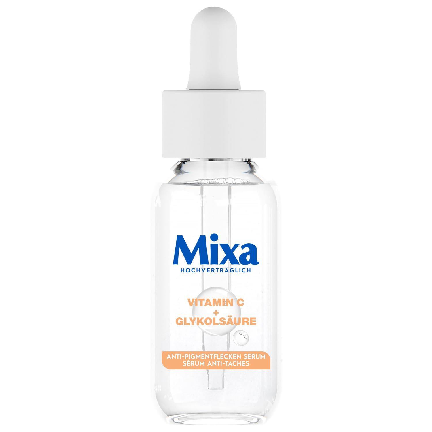 Mixa Siero Anti-Macchie Pigmentarie, per pelle spenta, non uniforme e sensibile, adatto per viso e collo, SPF 20, ipoallergenico, 30 ml.