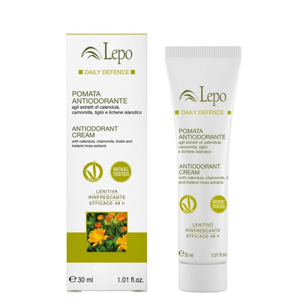 LEPO Crema antiodorante con Calendula e Licheni, protegge e lenisce la pelle sensibile, freschezza tutto il giorno.