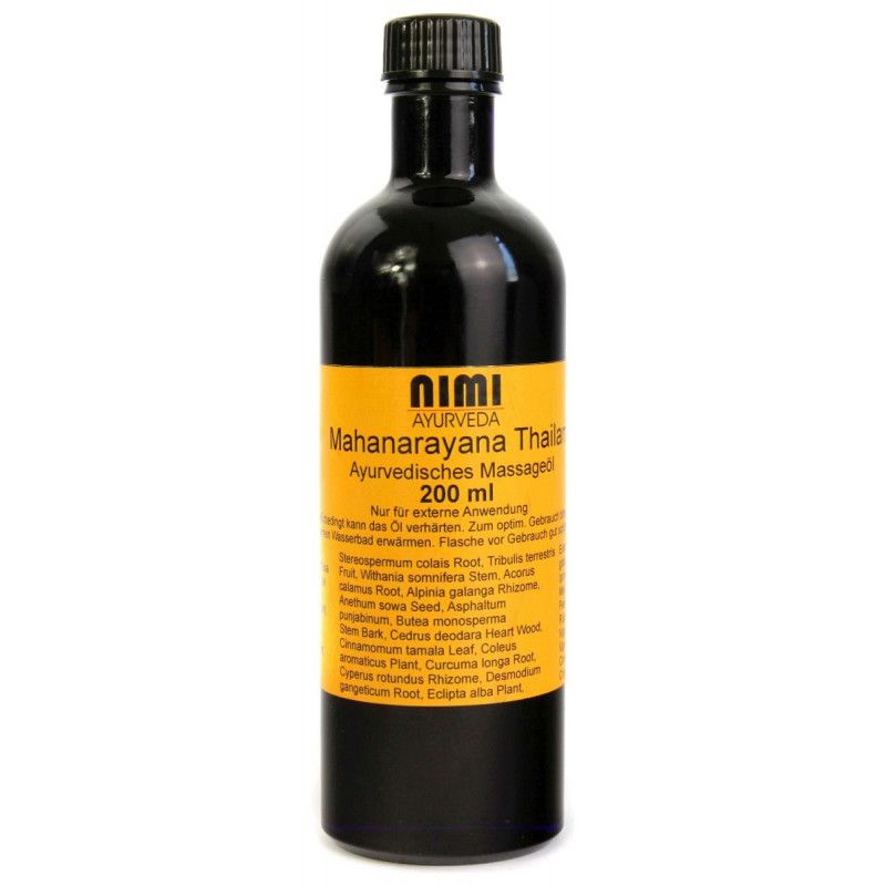 Mahanarayana Thailam di Nimi è un olio da massaggio ayurvedico di alta qualità a base di olio di sesamo. Riduce Vata.