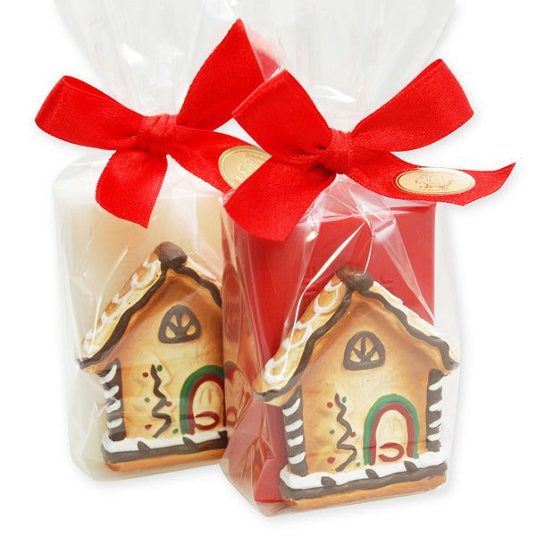 Florex - Sapone al latte di pecora quadrato con decoro casetta di pan di zenzero in violoncello