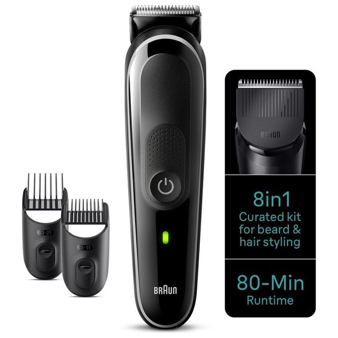 Braun MGK3440. Colore del prodotto: Nero, Grigio, Lunghezza minima del taglio: 1 mm, Lunghezza massima del taglio: 2,1 cm. Alimentazione: Batteria, Tempo di funzionamento: 80 min, Tipo batteria: Batteria integrata. Paese di origine: Cina. Larghezza: 137 mm, Profondità: 57 mm, Altezza: 282 mm. Larghezza imballo: 275 mm, Profondità imballo: 190 mm, Altezza imballo: 113 mm