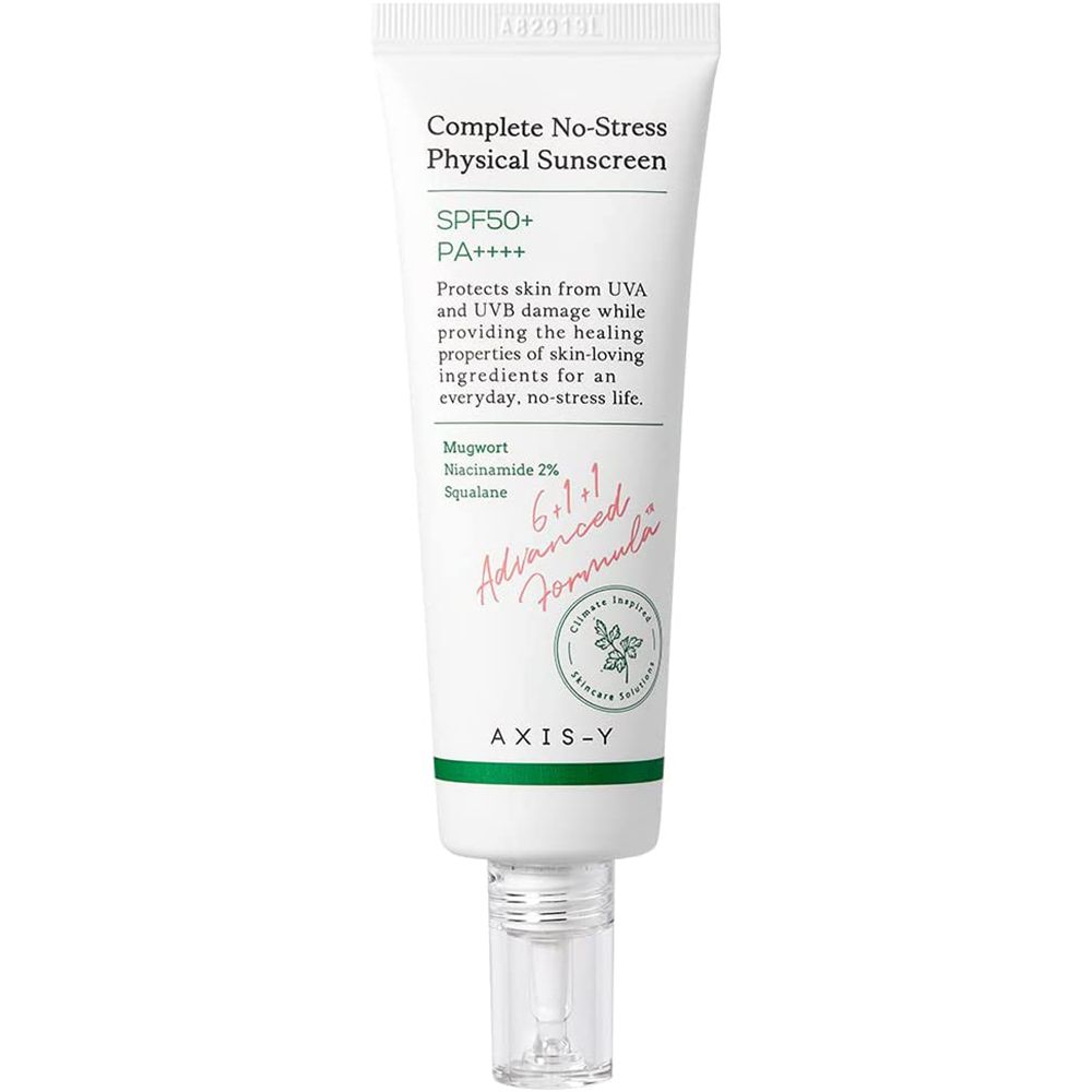 AXIS-Y Complete No-Stress Physical Sunscreen è una crema solare viso coreana con protezione SPF 50 PA++++, formulata con filtri fisici e ingredienti lenitivi per proteggere anche le pelli più sensibili.