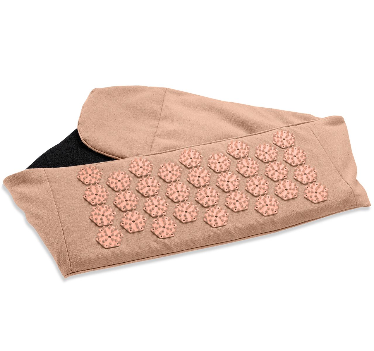 La cintura multifunzionale ha 736 punte particolarmente intense per stimolazione. Il rivestimento è realizzato in lino parziale e l'imbottitura è composta da fibra di cocco naturale e cotone.