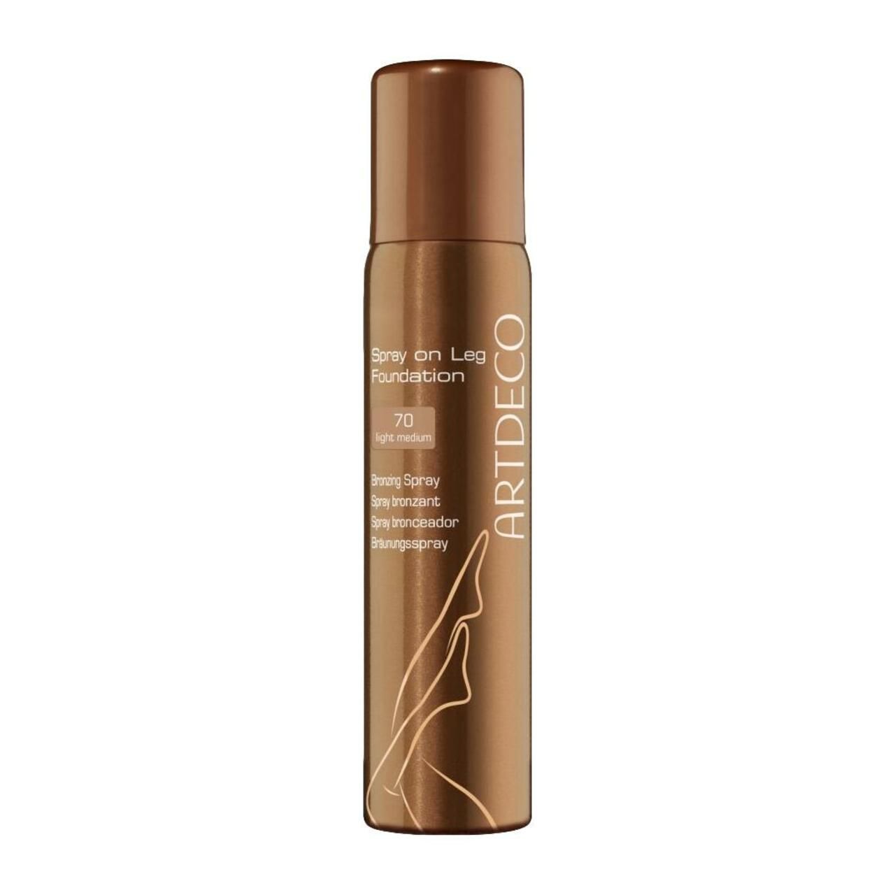 Fondotinta spray per gambe Artdeco, tonalità 70 Light Medium. Formato 100 ml. Prodotto studiato per l'applicazione sulle gambe per uniformare il colore della pelle e migliorare l'aspetto esteriore.